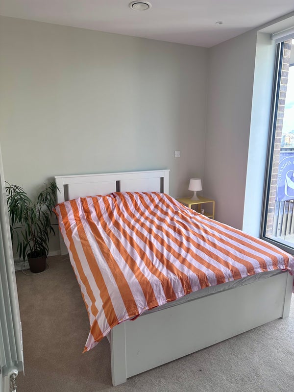 Your room comes with a comfortable double bed, brand new mattress, built-in wardrobe, and chest of drawers. The TV and furniture can be moved around however you like — I really want you to make the space feel like yours too.