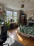 This room is a one-of-a-kind, massive double with 2 huge windows, a fireplace and gorgeous Victorian design features. The room is on the first floor of a big house with the following features: