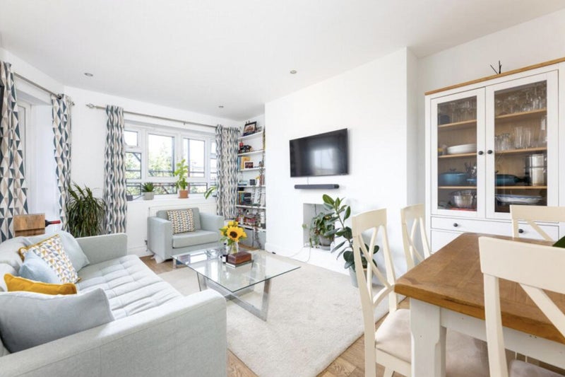 The room is light, large, and has a built-in wardrobe, with additional storage under the bed. The flat as a whole has been recently refurbished and includes a modern kitchen, a spacious living room, and a small balcony. There’s a dishwasher, washing machine, and a large fridge/freezer, alongside all the usual kitchen appliances. It’s in a quiet area, with immediate access to both the green spaces of Barnes and Putney’s restaurant/café/bakery scene. Putney Bridge and Barnes Station are both a 15 minute walk.