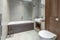 Lighting: Modern spotlights and large windows with blinds for complete privacy.