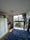 A double room with a free standing wardrobe and large window facing onto the garden