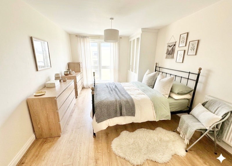 Live in style in this spacious 3-bed, 2-bath apartment (1,000+ sqft!) with stunning water views 🏙️💦. Your huge double room comes with a comfy bed, wardrobe, drawers & storage just bring your vibe!