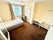 The room is furnished with a double bed, chest, wardrobe, and desk with chair. The kitchen is fully equipped with a dining area. There are 2 toilets and a bathroom.