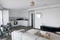 The apartment features a bright and spacious open-plan living and kitchen area, stunning view of the Thames, finished with sleek cabinetry and integrated appliances, creating a modern space perfect for both relaxing and entertaining. Large windows provide excellent natural light and a welcoming atmosphere throughout.