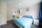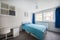 Your room is bright and generously proportioned, featuring a double bed, desk and chair ideal for home working, built-in shelving, and ample storage. Large windows flood the room with natural light, complemented by neutral décor and modern flooring.