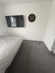 have a double furnished room available in my four-bedroom house. The room includes a built-in wardrobe, bed and a large TV mounted on the wall . The house is currently occupied only by myself, my 5-year-old child, and our friendly dog.