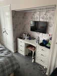 Double room with wardrobe and lots of cupboard space. Currently painted in a pale pink but I can repaint if long term renting. Does have a wall mount for a TV. Popular estate in Tilehurst, bus route to town nearby, driveway parking. I do have a nearly 3 year old Golden Retriever called Honey who is super friendly and loves everyone. All bills included.
