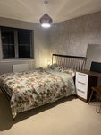 Available from 8th August. Large Double bed with a bath and built-in wardrobes with dressing table and study desk . All bills inclusive. Room is within a detached family home.
