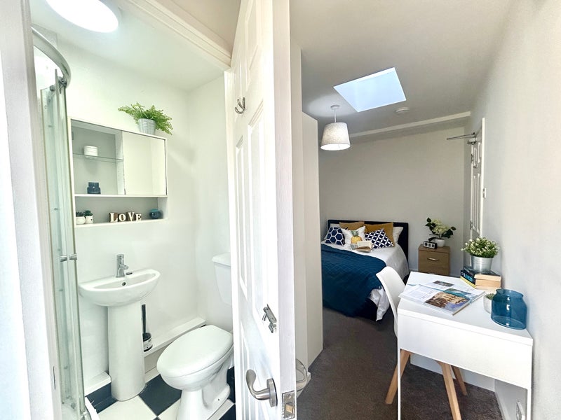 🛏 Room 6: Ground floor double en-suite room available NOW for £700pcm including ALL bills, fully furnished with double bed, mattress, wardrobe, desk and bedside table.