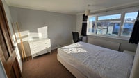 Double room with a king sized bed in a shared house on a quiet road, with off street parking and a garage (good for bike storage). Room comes with a lockable door, an integrated cupboard, chair+desk, chest of drawers, and bedside tabla.