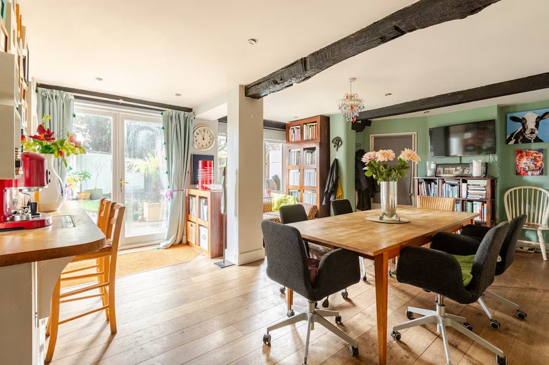The house is an eclectic former grain store, with access to a well-equipped kitchen, shared living/dining areas and garden.