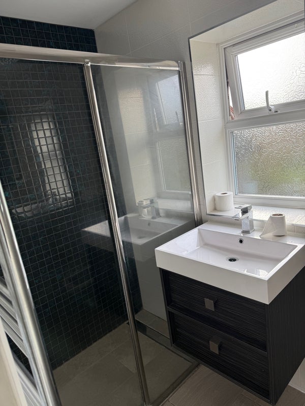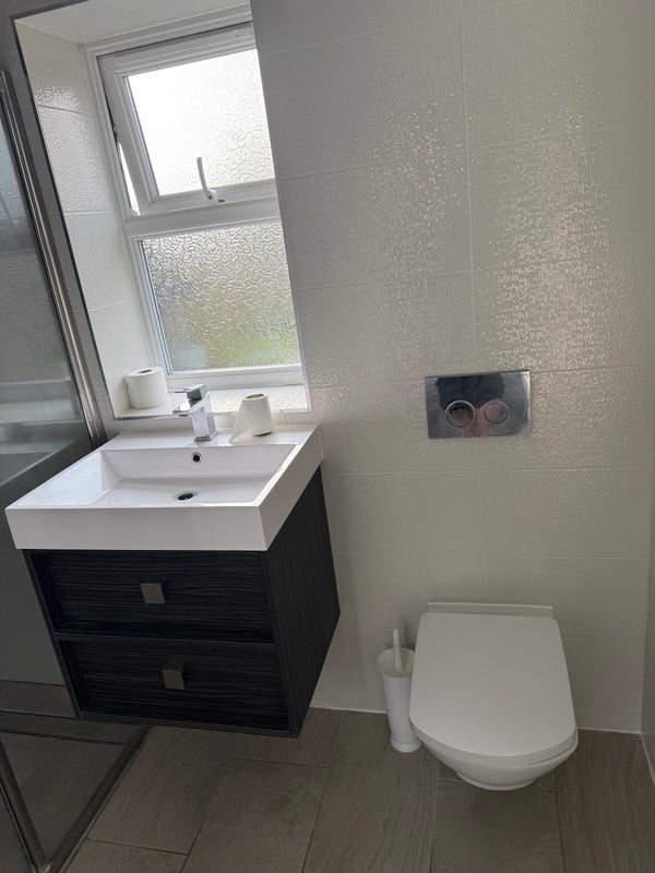 Double room with En-Suite available immediately in East Grinstead. Shared use of lounge and kitchen and washing machine and dryer etc. 15 min walk from station and 5 min walk from town