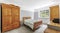A large (4.6m x 3.4m) double bedroom with ample wardrobe/storage space and a bright window.
