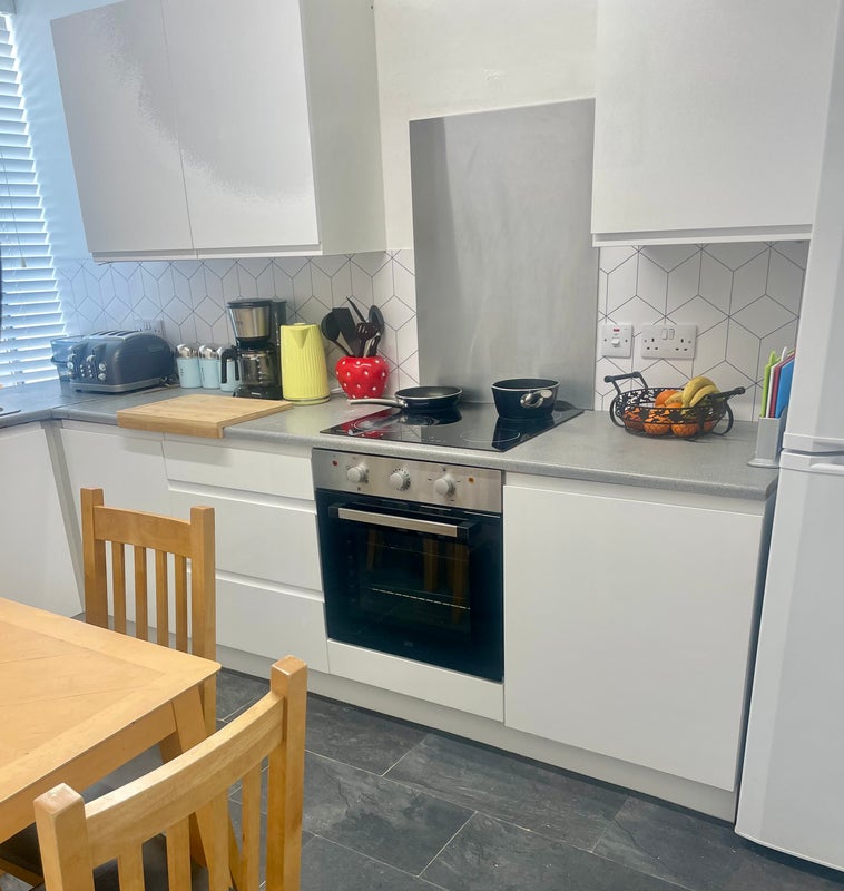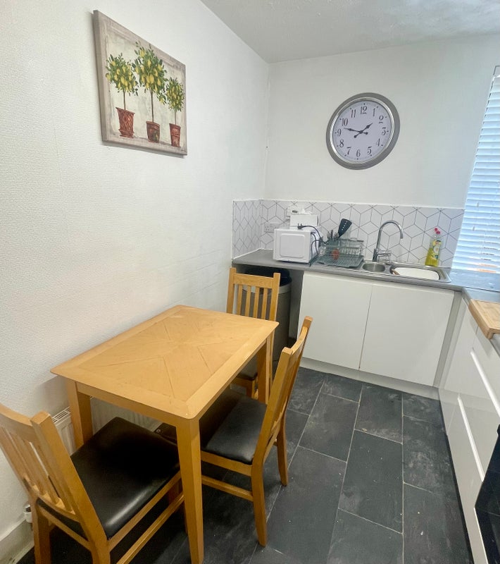 Delighted to present this bright and modern two‑bedroom ground floor flat, ideally situated on a desirable and quiet street. The property benefits from excellent transport links, with a bus stop directly outside and numerous routes, shops, cafés and restaurants only minutes away. Union Street is a brisk 10‑minute walk, and the flat is also conveniently located for Robert Gordon University. Spacious front bedroom — bright and fully furnished, featuring a king‑size bed. Rear bedroom — furnished with a single bed and drawer storage. Modern dining kitchen — integrated oven and hob, fridge/freezer, and dishwasher. Bathroom — shower over bath, WC and wash‑hand basin. Bright front lounge — comfortable sofas and smart TV.