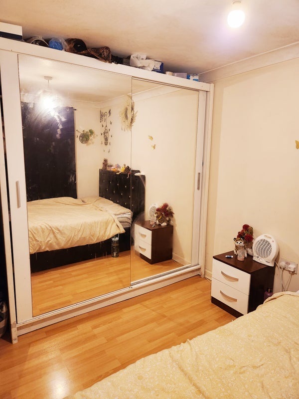 I have a large double bedroom with a large mirrored wardrobe and a King size ottoman bed with under bed storage available to rent. Owner residing household in a clean and tidy ground floor flat.