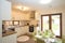 Modern kitchen-diner with integrated appliances and direct access to a spacious rear garden