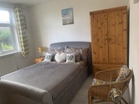 Fully furnished room with double bed to rear of house overlooking garden chest of drawers double wardrobe with drawers bedside table lamp TV aerial point and USB charging points.