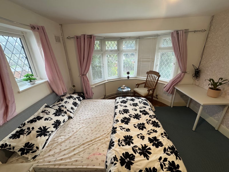 Lovely spacious fully furnished double room available in a beautiful detached cottage style duplex bungalow in Rainham RM13, the room boasts loads of natural light and beautiful morning fresh air, very serene room with window looking into our front garden that blossoms in summer.. fitted wardrobe chester draw chair and desk and new kingsize bed and mattress perfect for a working professional, couples looking for harmonious place to call home.