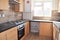 The flat is designed with modern grey painted walls that create a contemporary aesthetic throughout. The flooring is finished with mahogany wood effect laminate, ensuring durability while maintaining an elegant appearance.