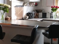 Large room, with kitchen/diner, living room and has two desks.