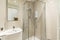 The washing machine is داخل the room, discreetly enclosed and very quiet.