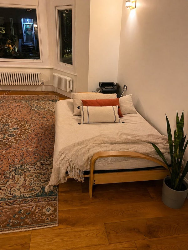 I am renting out my flat from now (or 5 May rather) until ca. 12 July. It’s a bright and spacious room (ca. 6 m long and 5 m wide), has high ceilings and was recently renovated. Induction hob, dishwasher, washing machine etc. Bills (council tax, water, broadband, gas/electricity) are included as long as use of utilities is within reason (there's a smart meter). There is a double bed, the model is Kiteen Huonekalutehdas Notte Divan/Sofa Bed 200 cm if you want to look it up and a clothes rail. The bathroom has a bathtub and a walk in shower. The area is superb. 15 minutes from the Heath. 4 minutes to the tube (Jubilee and Metropolitan). 10 minutes to Overground (South Hampstead and Finchley Road/Frognal) Waitrose, Aldi, Sainsbury’s nearby. Please let me know the reason you are looking and for how long you would like to stay, thank you!