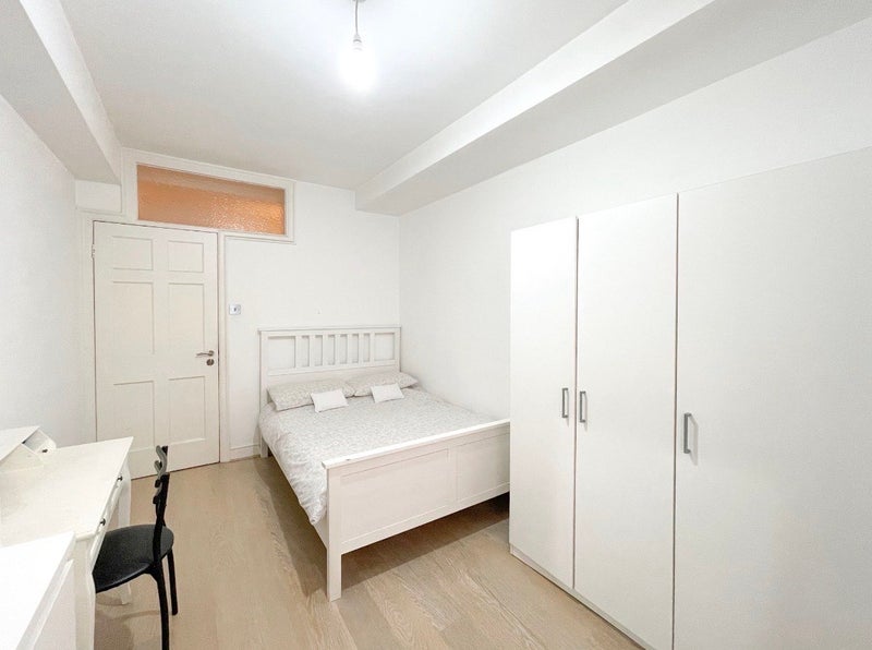 Comfortable and bright double room with a double bed, wardrobe, and small desk – perfect for working or studying from home.