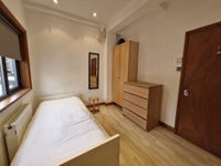 The room is fully furnished and includes a single bed, wardrobe, desk, stool, shelves, and additional storage space. You’ll be sharing the bathroom with just one other tenant.