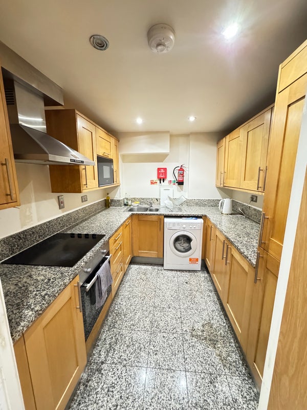 The flat is clean and well kept, with a spacious living room and dining area, and a fully equipped kitchen (including a dishwasher). Wooden floors throughout.