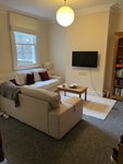 There is a shared, roomy living area with large sofa, coffee table, bookcase and TV. Shared kitchen with table and chairs, dishwasher, hob, oven, microwave, fridge freezer and washing machine available to use, unlimited broadband and a weekly cleaner. Shared bright and airy bathroom with toilet, and shower over bath downstairs. Shower room with sink upstairs. Gas central heating. Small outside garden and patio area.