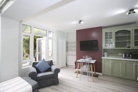 This spacious six-bedroom home combines modern style with comfortable living. At its heart is a bright, open-plan kitchen and living area, complete with a wall-mounted 48" smart TV — the perfect spot for cooking, dining, and unwinding together. The living space flows seamlessly into a well-kept garden, ideal for summer barbecues or a quiet coffee outdoors. With two shared bathrooms for five residents and one private en-suite room, the property offers both convenience and a sense of community.