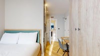 Available now, covering 135 sq. ft. in living space and situated on the second floor, this modern property comes with big windows, high ceilings and ample storage.