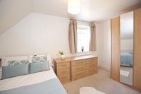 The available room - Bedroom 5 on the floor plan comes fully furnished including a double bed, memory foam mattress, built in wardrobes , chest of drawers and bedside table.