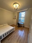 Very high ceiling with double room comes fully furnished with double bed, triple fully fitted wardrobes and desk with chair. Natural light, 1 room is already rented to a single lady from an imperial college. There is a small cosy living room too.