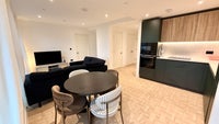 Step into a light-filled open-plan living space, featuring floor-to-ceiling windows that flood the interior with natural light and frame panoramic views over the vibrant London skyline. The sleek, fully equipped kitchen flows seamlessly into the living and dining areas, creating a perfect environment for both everyday living and entertaining. The private balcony/terrace invites alfresco moments and extends your living space outdoors.