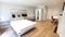 Large Kingsize bed with quality comfortable mattress, storage space underneath. A three door wardrobe with a mirror & lots of space to bring in additional bits. Room comes with a desk & leather chair. There is space to bring in a dressing table or an armchair if you wish, a chest of drawers etc...