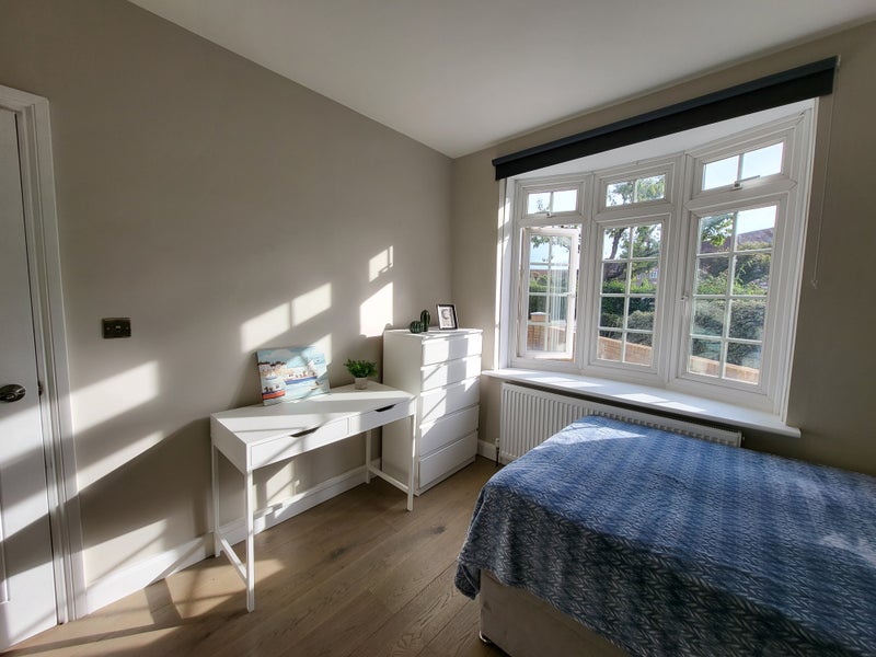 Available: Room 2, Off-suite Double Room. Double Room (personal bathroom), Located on the ground floor. Shared facilities include living room, dinning area, garden and kitchen (shared with 3 other tenants).