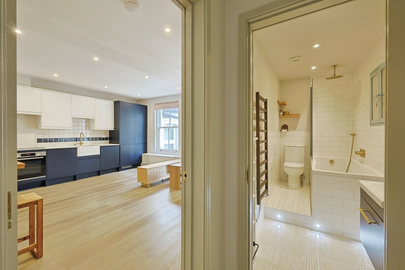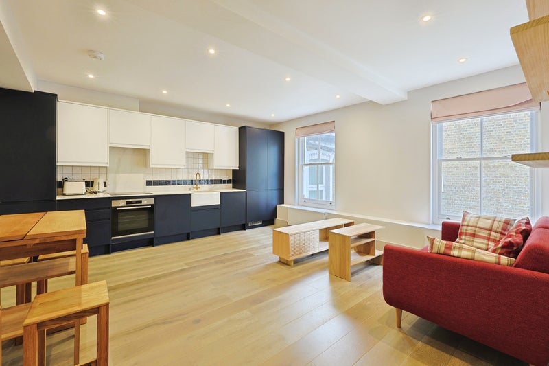 This elegant home boasts a sleek, contemporary kitchen fitted with newly refurbished, high-spec appliances, perfectly designed for modern living and entertaining. The property further benefits from a beautifully appointed bathroom, two generously sized bedrooms, and a bright, sophisticated interior with clean, minimalist styling.