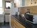 The room is partially furnished ( a desk and chair, shelves, a bed and a wardrobe with a shared kitchen where each room has its own storage space and its own fridge.