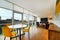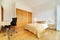 The ensuite master bedroom is available with a jacuzzi spa bath and shower, plus mid-century modern furnishings including an office writing desk and new eames style leather office chair with walnut wood backing as well as a double bed with a new memory foam orthopaedic mattress and floor to ceiling windows. There is also ample closet space with the built-in full size wardrobe cupboard.