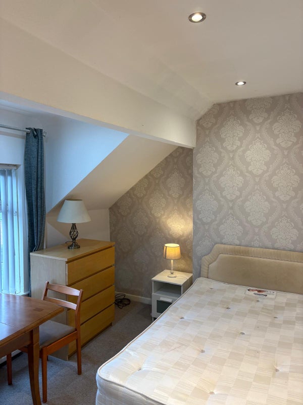 Room for rent in large two bedroom flat, no fee ,some bill paid by landlord ,beautiful big bedroom share bathroom and kitchen with one flat mate ,near to MRI hospital ,train station ,restaurant ,bus stops and shopping Center, waking distance to university ,very clean ,quite ,and well presented flat .