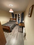 Double room for rent with ensuite in a comfortable flat. Decorated room with bedding desk, chair, bedside table, lamp and wardrobe. Fully furnished flat and room with all required amenities. Kitchen and living area are fully furnished with crockery, pans and entertainment system all provided. Very close to the city centre with trams and buses easily accessible. 25 minute walk into the centre of town and 10 minute walk to the free bus. Only other flatmate is live in landlord. Rent is inclusive of bills (including TV license and Council Tax).
