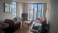 The flat is in a fantastic location — close to the city centre, and perfectly connected for commuters with Cornbrook and Deansgate tram stops a short walk away.