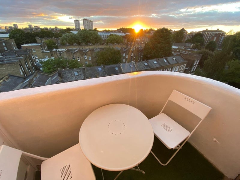 The room is fully furnished (double bed, large wardrobe, chest of drawers, cupboard, working desk + chair), has a small fridge and a beautiful, west-facing private balcony.
