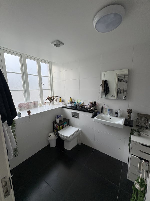 The bedroom is spacious with lots of wardrobe space and will be clear and empty for the submitter (furniture will remain) and the private ensuite includes bath/shower/toilet too. There is a shared toilet as well for guests.