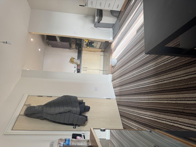 Hi there is a space availabile for 1 person in living rooms with wardrobe fully furnished with single bed, which has a partition to kitchen.