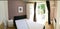 The room consists of a double bed, bedside table, chest of drawers, wardrobe.