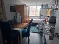 Walk up the stairs of the main house and turn left. Bedroom area (single bed) with TV, kitchennette and dining area, ensuite shower room with toilet, sink and washing machine. Fully furnished and equipped. The door locks. Short walk to Tube (Metroplitan and Piccadilly Lines), parks and shops close by. Offstreet parking.