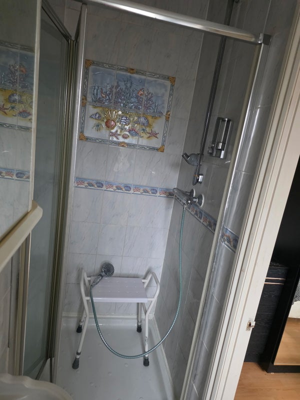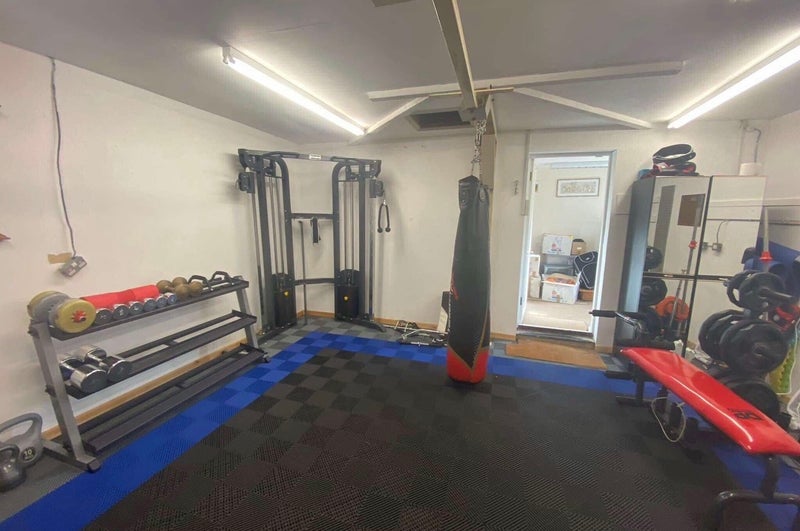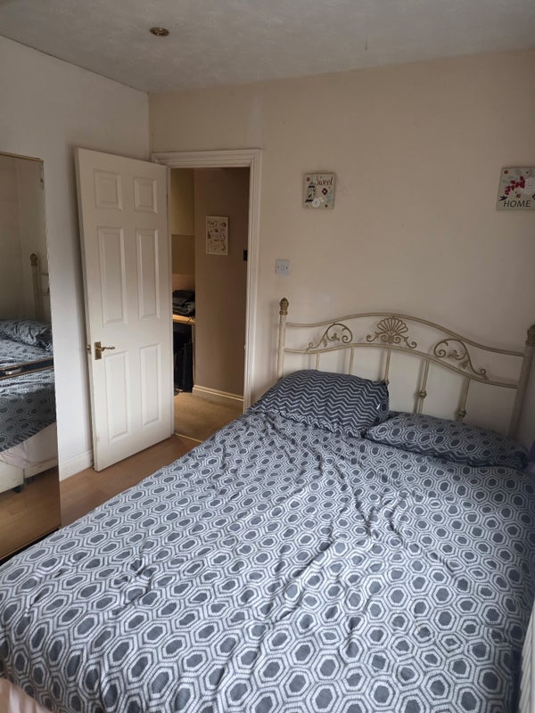 With ensuite shower room. Shared Kitchen breakfast bar. Main bathroom with bath. Double garage with fitted gym. Smoking outside or on Log Cabin. Can accommodate a couple for an additional charge.