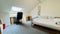 Shared Spaces: A functional kitchen, a shared bathroom with an electric shower over the bath, and a comfortable lounge with French doors opening to a Juliet balcony (just railings, but great for fresh air!).